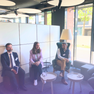 Auch die politische und institutionelle Unterstützung war spürbar: Tobias Haneklaus vom Niedersächsischen Ministerium für Wirtschaft, Verkehr und Bauen sowie Lilly Ekkert von der NBank begleiteten das Treffen mit großem Interesse. Ihr offener Austausch mit den Unternehmensvertreter*innen unterstrich die Bedeutung gelebter Zusammenarbeit zwischen Praxis, Politik und Förderung.